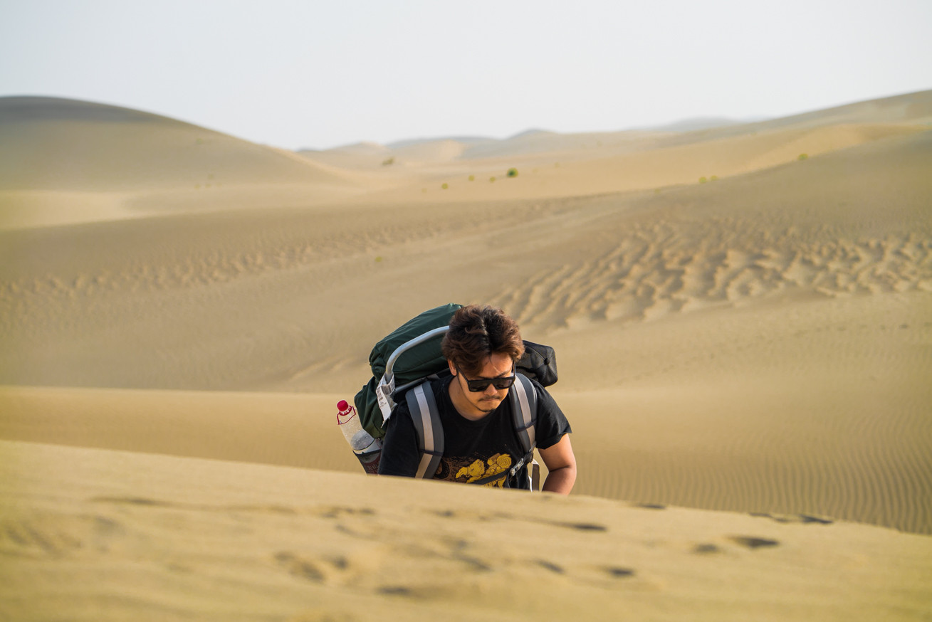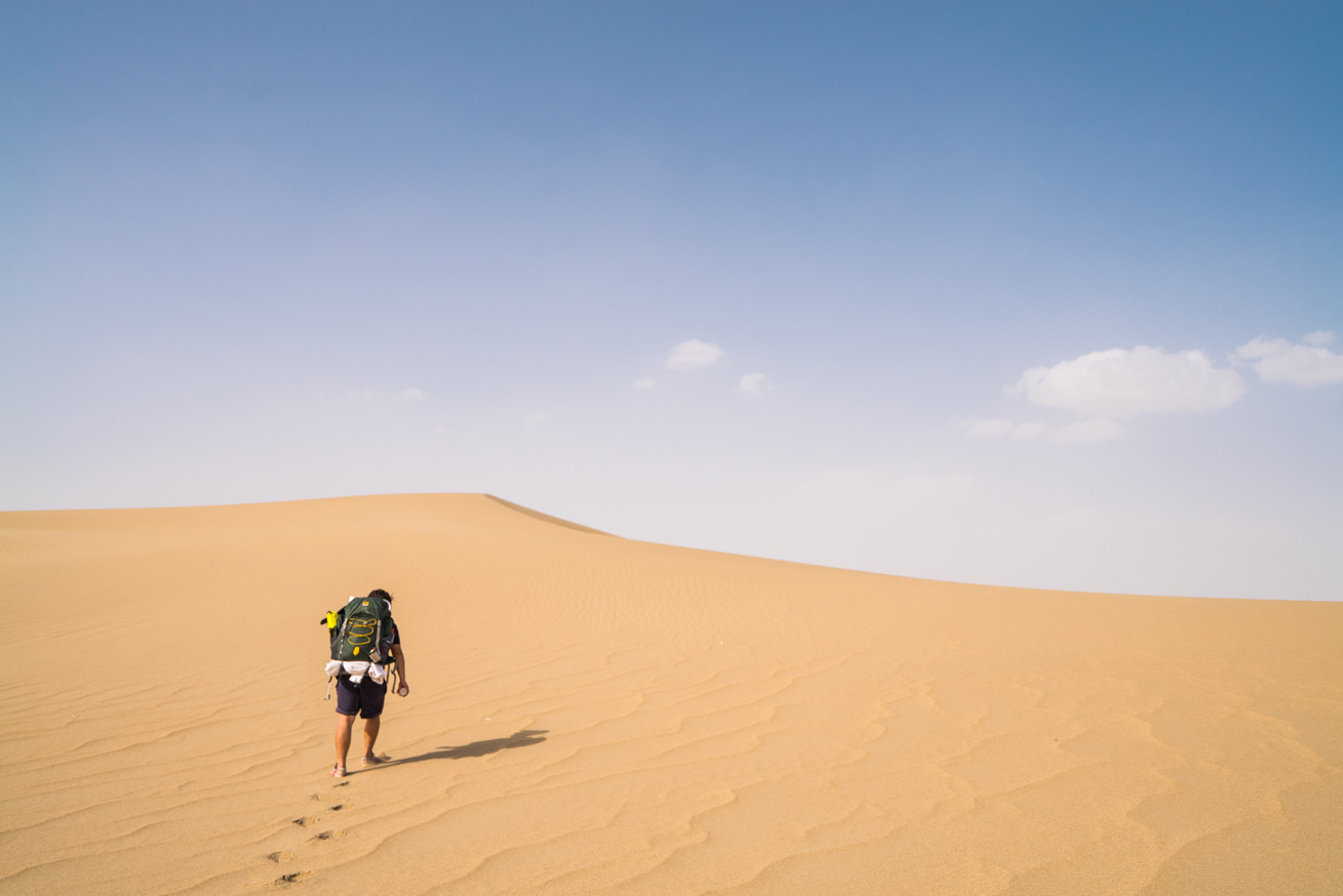 自転車を砂漠の脇に停めて、徒歩で砂漠の中へと入ります。
