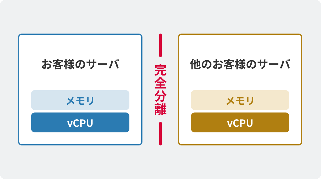 安定性重視のサーバ設計お客様ごとに独立した仮想サーバをご用意。