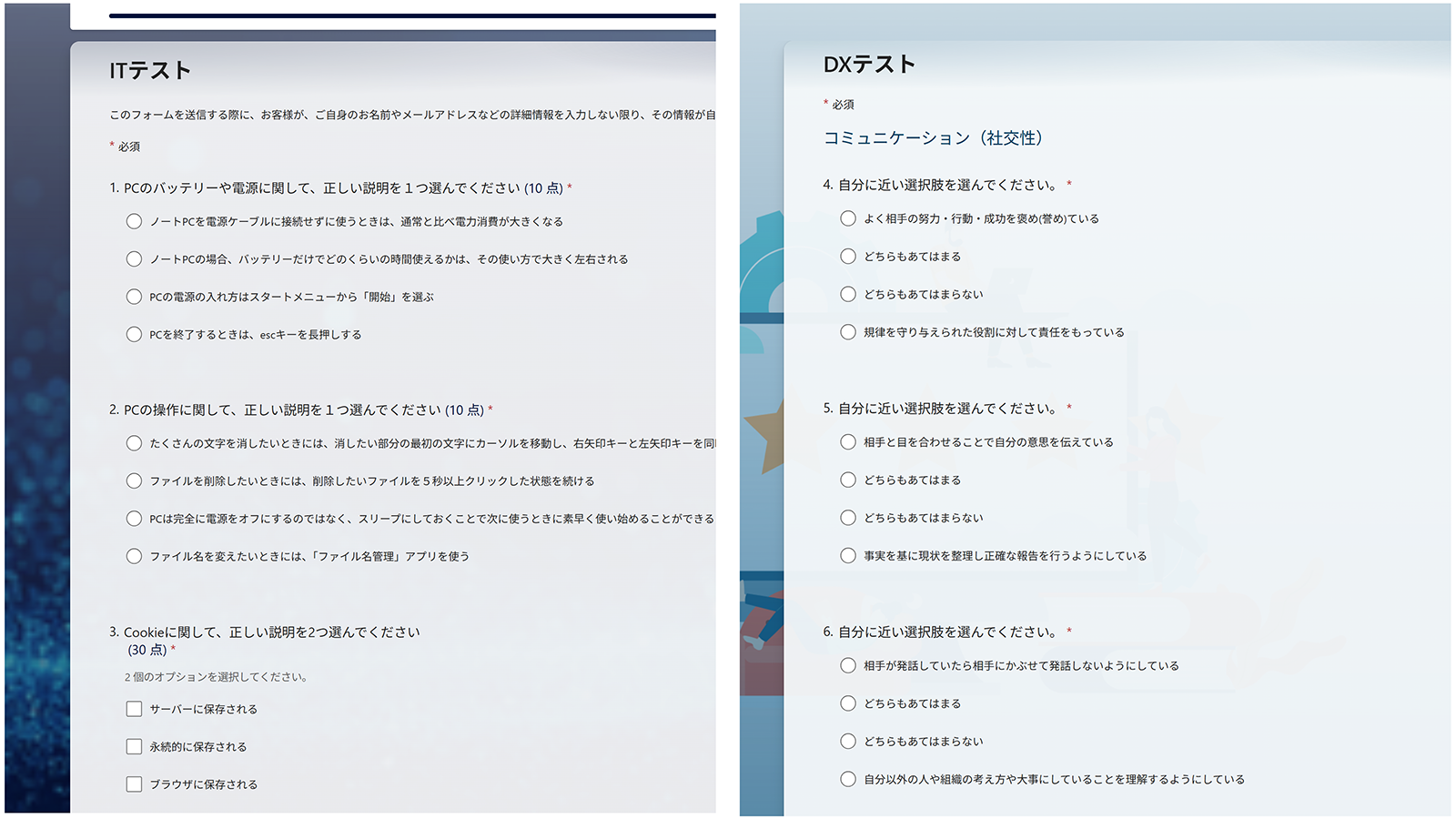 従業員のDX適性を「ITテスト」と「DXテスト」によって診断。DX推進に必要な人材の特性とスキルを可視化し、組織の変革力を明らかにします。