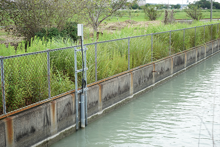 - 水田用水位センサーの技術を応用したもので、用水路の水位を60cmまたは400cmまで測定