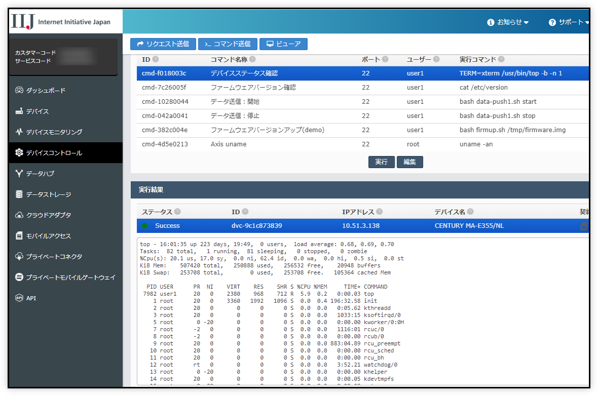 機器1台ごとではなく、コントロールパネルから一括でリクエスト/コマンド送信が可能。