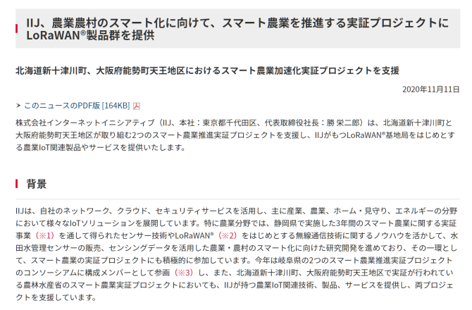 IIJ LoRaWAN®ソリューション 事例・トピック一覧
