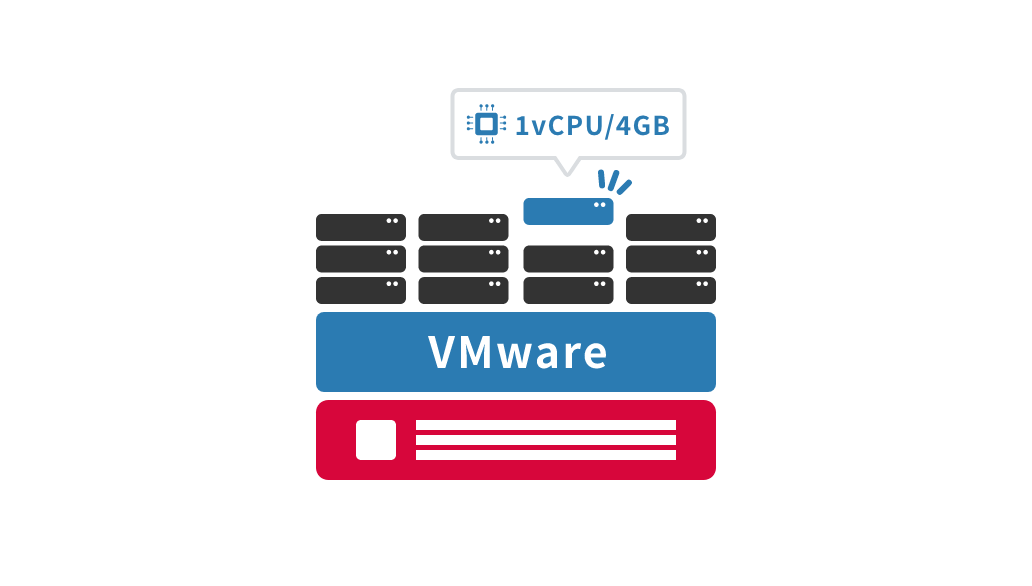 サーバ単位ではなく、最小「1vCPU/4GBメモリ」の仮想リソース単位で契約が可能。ハイパーバイザーの管理不要で、運用負荷も大幅に軽減できます。