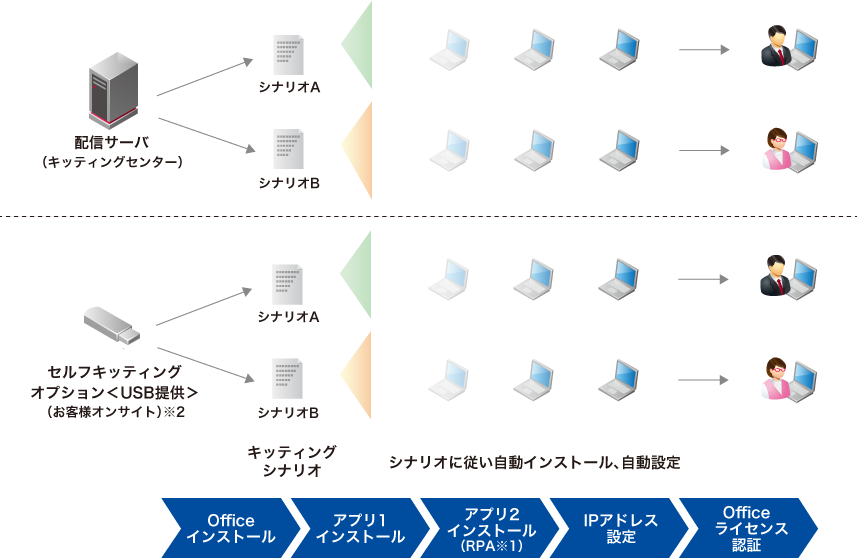 - セルフキッティングオプションは、マスターレスでキッティングされたPCが対象となります。
