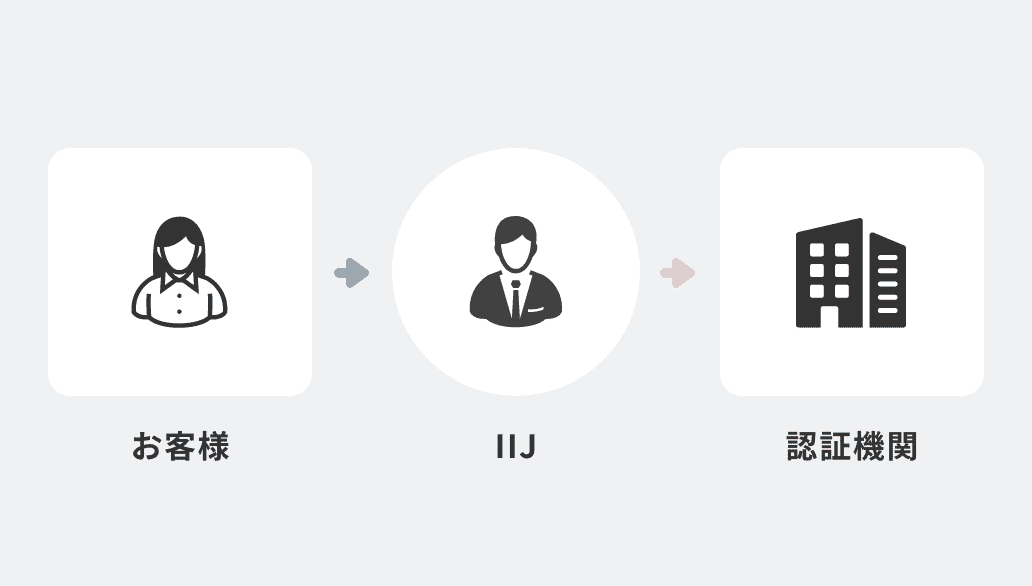 面倒な取得申請を代行サーバ証明書の取得申請に必要なCSRの作成や認証機関への申請を、IIJが代行します。