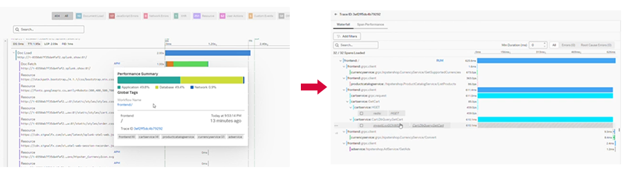 アプリケーションのトレースとインフラメトリックを活用して、システム全体を通して問題発生箇所を正確に特定することが可能です。