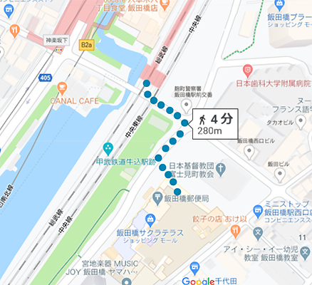 JR 中央・総武線「飯田橋駅」からお越しの場合