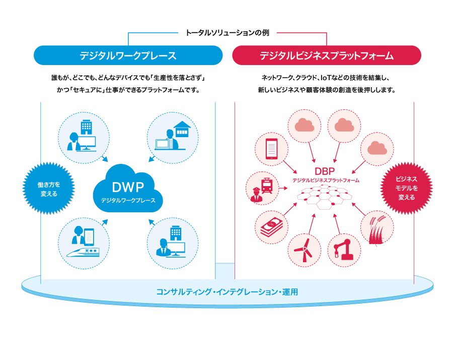 わたしたちはこうした「デジタルシフトが進んだ世界」を支えるIT環境を、ワンストップで実現します。そして、デジタルシフトを快適かつ安全な状態で実現できる、高品質なトータルソリューションを、ワンストップで提供しています。