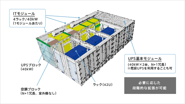 - コンテナ1台に収まらないIT需要にも対応(需要に応じて段階的拡張も可能)