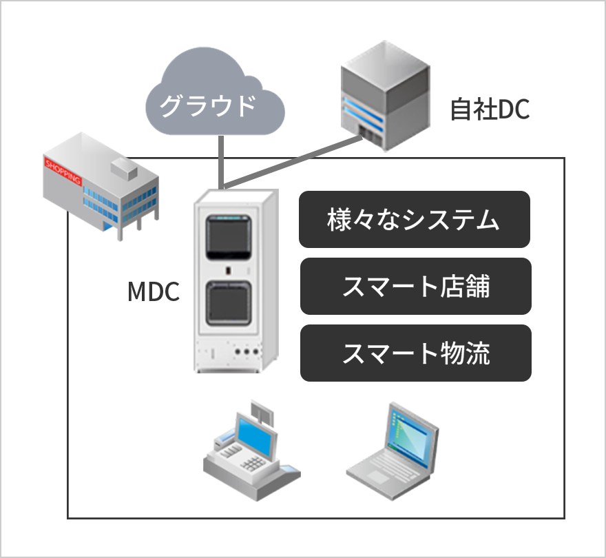 コンテナ型データセンター co-IZmoシリーズよりも小規模な需要や、屋内外に省スペースで設置したいといった需要に応えるため、2021年にマイクロデータセンターを活用したエッジデータセンターソリューションの提供を開始しました。