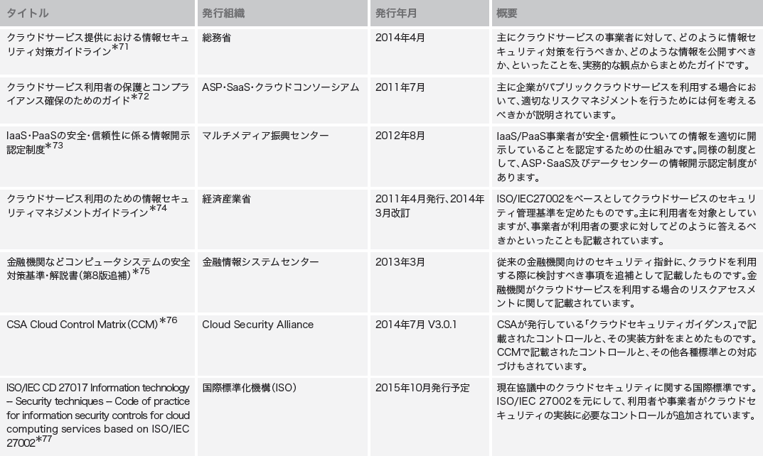 表-4 クラウドを安全に提供・利用するための代表的なガイドなど