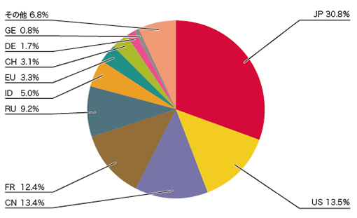 図-5 発信元の分布(国別分類、全期間)