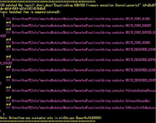 本稿では、HDDのファームウェアを再プログラミングしてデータを隠蔽するマルウェアに対しては、まったく打つ手がないわけではなく、メモリからの検出が有効であることを示しました。今回、このマルウェアに特化して検出するためのIOCと、同様の機能を持つマルウェアを検出するための汎用的なIOCについて検討しましたが(※67)、後者に関して誤検出の少ないものを作るには、十分な解析と検証に基づいた、マルウェアの機能に即した定義が必要になります。よって、対応の緊急度合いに応じて臨機応変にどちらの観点で作るか判断していくと良いと思われます。