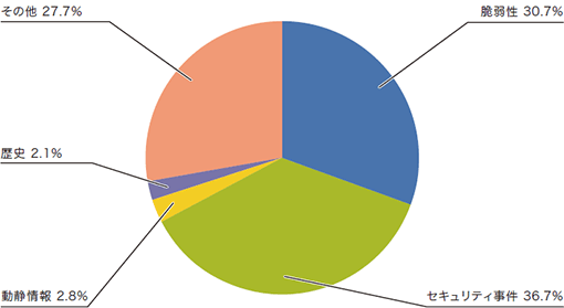 ここでは、2015年7月から9月までの期間にIIJが取り扱ったインシデントと、その対応を示します。まず、この期間に取り扱ったインシデントの分布を図-1に示します(※1)。
