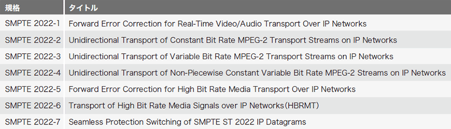 表-1 SMPTE STANDARD 2022シリーズの題名