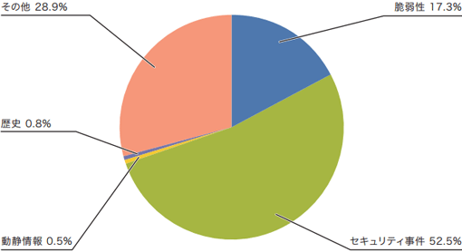 ここでは、2015年10月から12月までの期間にIIJが取り扱ったインシデントと、その対応を示します。まず、この期間に取り扱ったインシデントの分布を図-1に示します(※1)。