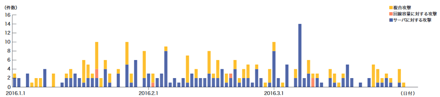 図-2に、2016年1月から3月の期間にIIJ DDoSプロテクションサービスで取り扱ったDDoS攻撃の状況を示します。