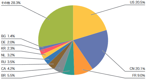 図-3 DDoS攻撃のbackscatter観測による攻撃先の国別分類