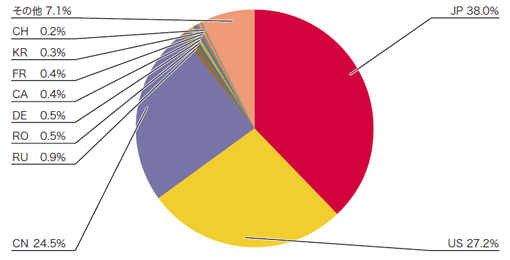 図-8 検体取得元の分布(国別分類、全期間、Confickerを除く)