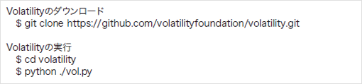 Volatility Framework(以下、Volatility)はコンピュータフォレンジックの際にメモリイメージを解析するために使用されるオープンソースソフトウェアです(※48)。