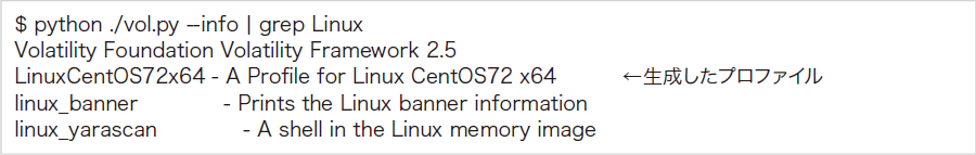 生成したプロファイルがVolatilityに認識されているかどうかは、図-20のようなコマンドで確認することができます。