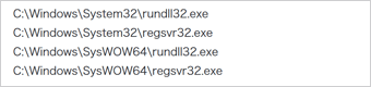 rundll32.exe、regsvr32.exeはVBScript(.vbs)やJScript(.js)ファイルをリモートのホストからhttpなどを経由して取得し、実行する機能があります。これは攻撃者に使われうる機能であるため、禁止すべきです。ただし、rundll32.exeやregsvr32.exeは通常のWindowsの処理中にも使われているため、実行そのものを禁止することはできません。そこで、セキュリティが強化されたWindowsファイアウォールの送信の規則など、パーソナルファイアウォールの機能を用いて、これらの実行ファイルが外部と通信するのをブロックします。64bit環境の場合、SysWOW64側にも実行ファイルが存在するため、同様にブロックします。