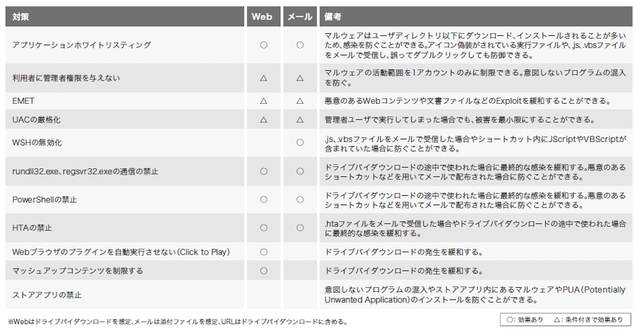 各侵入経路ごとの各対策の有効性を以下の表-1にまとめました。