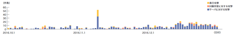 図-2に、2016年10月から12月の期間にIIJ DDoSプロテクションサービスで取り扱ったDDoS攻撃の状況を示します。