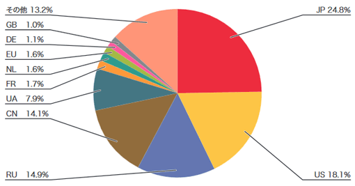 図-3 DDoS攻撃のbackscatter観測による攻撃先の国別分類
