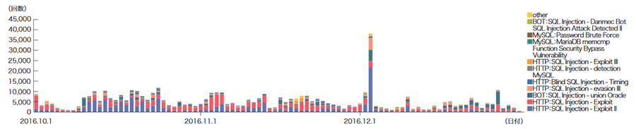 図-16 SQLインジェクション攻撃の推移(日別、攻撃種類別)