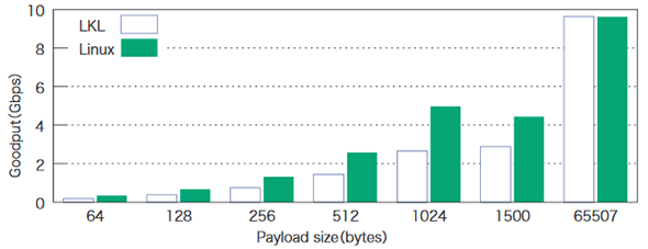 一方でこのように追加された抽象層は、オーバヘッドを生むことが一般的です。例として、下位層のOSで動作しているパケットの送出タイミングを制御するスケジューラと呼ばれる機能は、LKL内部にも存在するため、単一のパケットに対して複数回制御がなされる可能性もあります。LKLのような仮想化技術にはこのような重複した機能の除去などを念頭に置いた適切な設計が必要となります。