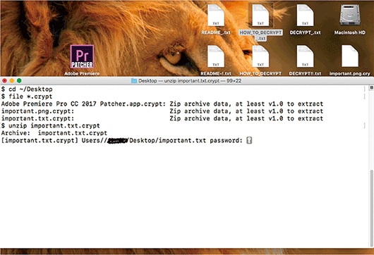 Patcherはユーザのファイルを暗号化し、復号と引き換えにBitcoinの支払いを要求するランサムウェアで、macOS環境で動作します。このランサムウェアはAdobe Premiere Pro やMicrosoft Officeなどの商用アプリケーションを不正に利用するための"パッチ"としてBitTorrentを介して配布され、ユーザ自身の手でダウンロード、実行させることによって感染を果たします。