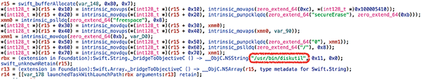 しかしながら、macOS環境における、diskutilコマンドのパスは/usr/sbinであるため、この外部コマンドは実行できません。この軽率なバグによって進捗が2/3から進まなくなっていることが分かります(※73)。なお、このコマンドが完了すると進捗表示が更新され「DONE!¥nRead the README.txt file on your Desktop!」という文字列に差し替えられるようになっています。