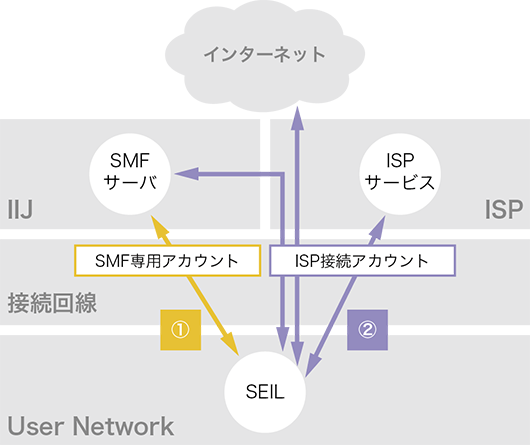 この接続先自動更新プロトコルはユーザの運用管理の手間を減らす一助となりました。しかしISPから一方的に情報を渡すだけではできることは限られています。ユーザが自由にネットワークを構成した上でそのネットワークの運用管理を手助けできるシステムを目指し、SMFの開発が始まりました。