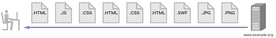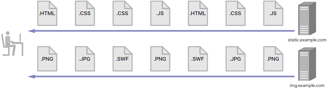 一方、通常のWeb閲覧時は、任意のWebサーバから送信されるコンテンツタイプがこのように遷移するケースはほとんど考えられません。例えば、大規模なWebサービスなどではコンテンツタイプに応じてサーバが用意されることが多いため、図-13のようにExploitとして悪用されるFlashやJavaなどのコンテンツと、LandingページのようなHTMLコンテンツは異なるサーバから送信される傾向にあります。また、単一サーバで全コンテンツをホストしている場合は、図-14のように近年のExploit kitではあまり用いられない画像やCSSなどが同じサーバから送信されることになります。
