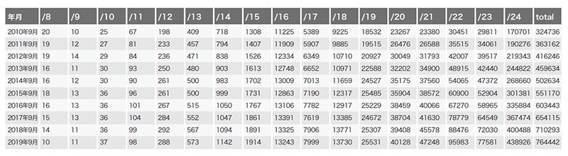 表-2 「IPv4 フルルート」に含まれるunique IPv4アドレス総数の推移