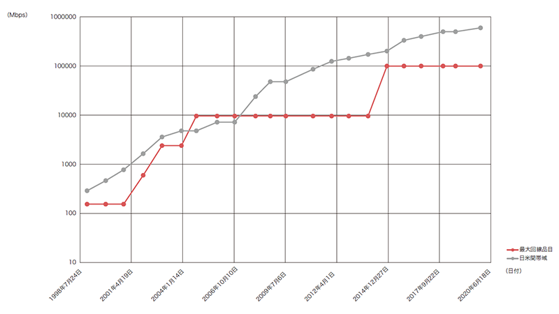 2018年のこの記事で、IIJのバックボーンの総トラフィックが10年で10倍以上になっていることを紹介しました。今回はIIJのバックボーンの歴史、特に回線品目について振り返ってみたいと思います。