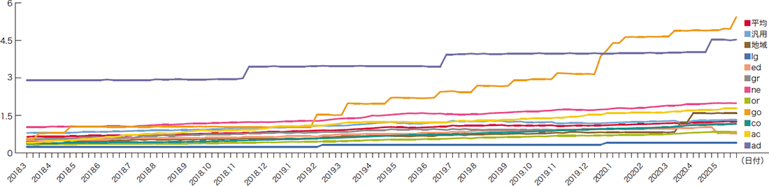 DMARCのjpドメイン名での普及率の推移を図-6に示します。2018年3月が0.57%で、2020年5月では1.19%となり、0.62% 増加しました。割合は2年ほどで倍増はしましたが、そもそもの設定割合が低いのと、増加自体もSPFに比べても非常に低い値であり、いずれの数値も非常に低い結果となりました。属性別で現在最も設定割合が高いのはgo.jpドメイン名で、それでも5.4%です。go.jpのSPF設定割合は92.4%ですので、DMARC レコードの設定もSPFと同様の取り組みで、率先して設定を増やすことを期待しています。