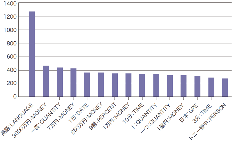 テキストデータ分析が難しい背景に、分類情報がなく解析軸が定まらないという点がありますが、このように固有表現抽出を用いることにより、テキストデータを固有表現の属性を使って分類可能になるので非常に大きな意義があります。