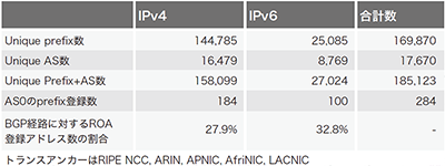 次に「IPv6フルルート」の情報を確認します(表-3)。なお2019年11月にはARINに対して/12ブロックの最初の追加割り振りが行われています(同6月のRIPE NCCに続いて2番目)。