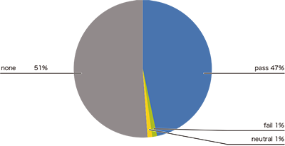 自社ドメインになりすましたメールへの対策や、有名ブランドを騙ったフィッシング対策に送信ドメイン認証技術が効果的であるのは間違いありませんが、ここに示すデータは受信メールの総数を母数としたときに対する送信ドメイン認証の結果の割合を示したものであり、例えば、メール配信事業者が送信するようなボリュームの大きいメールを受信すると、その数がデータに対して支配的になる傾向があることに留意してください。また、迷惑メールを送信する者も迷惑メール送信用のドメインを取得して送信ドメイン認証に対応してきますので、一概にpassだから非迷惑メールとは限らない点に注意する必要があります。
