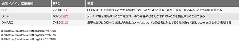 表-2 一般的な送信ドメイン認証技術の特徴