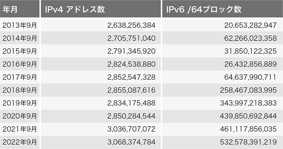 5年前からのIPv6比率の推移を表-5にまとめます。