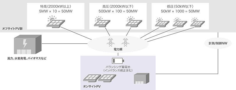 カーボンニュートラルの実現には、電力を供給する発電設備とそれを消費するDCが有機的に結合した新しいモデルの創出が求められます。IIJでは、省エネ技術をベースに、複数の発電所群、蓄電設備、需給制御などを組み合わせた「カーボンニュートラルデータセンターリファレンスモデル」(図-3)を考案し、ビジネス・技術の両面から技術実証や社外パートナーとの協力を進めながら、自社DCの改修・新築に適用していきます。