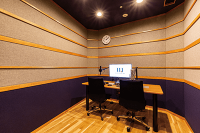 100インチの大型スクリーンで7.1.4chのDolby Atmos対応の音響設備で作品を試写できます。また、出演者の控室や対談などの撮影場所としても利用できます。