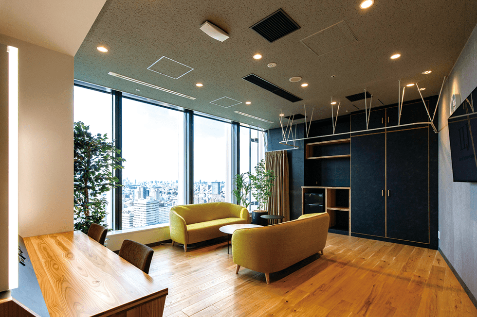 神楽坂方面を見渡せる眺望で出演時間までリラックスできます。また、化粧台や着替え用のカーテン、大きな収納スペース、冷蔵も完備しています。こちらもインタビューや対談、ディスカッションなどの撮影も可能です。動画だけではなく、スチルの撮影にも使えます。