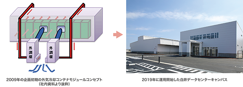 2010年代は、クラウドサービスの普及に伴い、ハイパースケールデータセンターの集積が進んだことや外資系事業者の市場参入などによりデータセンター業界が大きく変容しました。IIJは、この変化に対応するため、図-1のようにゼロからコンテナモジュールを開発し、ハイパースケールデータセンターの構築まで漕ぎ着けました。そして、2023年には白井DCC2期棟の運用を開始し、現在は2026年の運用開始に向け3期棟の検討を進めており、AIや量子コンピューティングなど、これまで以上の激変が予測される2020年代に向けて、新たなデータセンターの形を模索し続けています。