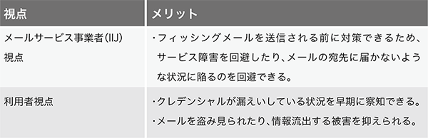 フィッシングメールが送信される前に対策できれば、表-1のようなメリットがあります。