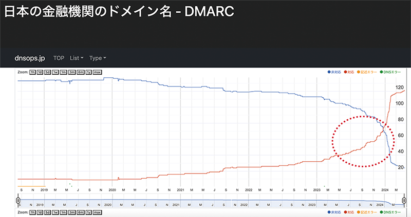 図-4 日本の金融機関ドメインのDMARC対応の様子