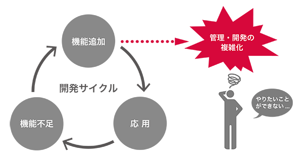また、できあがった製品について考えてみても、細かな工夫の積み重ねが「この製品ならでは」という特色をなすことになるので、新しいアイデアが出てこないと製品存続が危ぶまれます。そんな中、何とか折り合いを付けて機能追加をするわけですが、前述のように、機能追加することで機器全体が複雑化するたびに、新しいアイデアを実現するのが億劫になっていき、事態は一層困難さを増します。